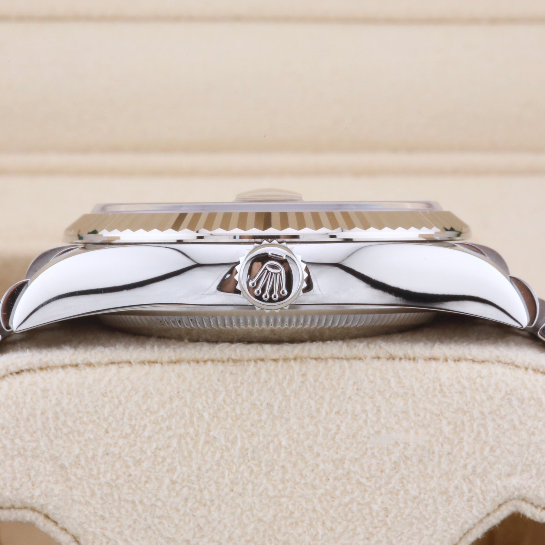 The model we present to you today is a classic design featuring a fluted bezel and a jubilee bracelet made from white gold and steel. The blue dial adds a tasteful amount of colour, making this one of the best configurations for a 36mm Datejust.