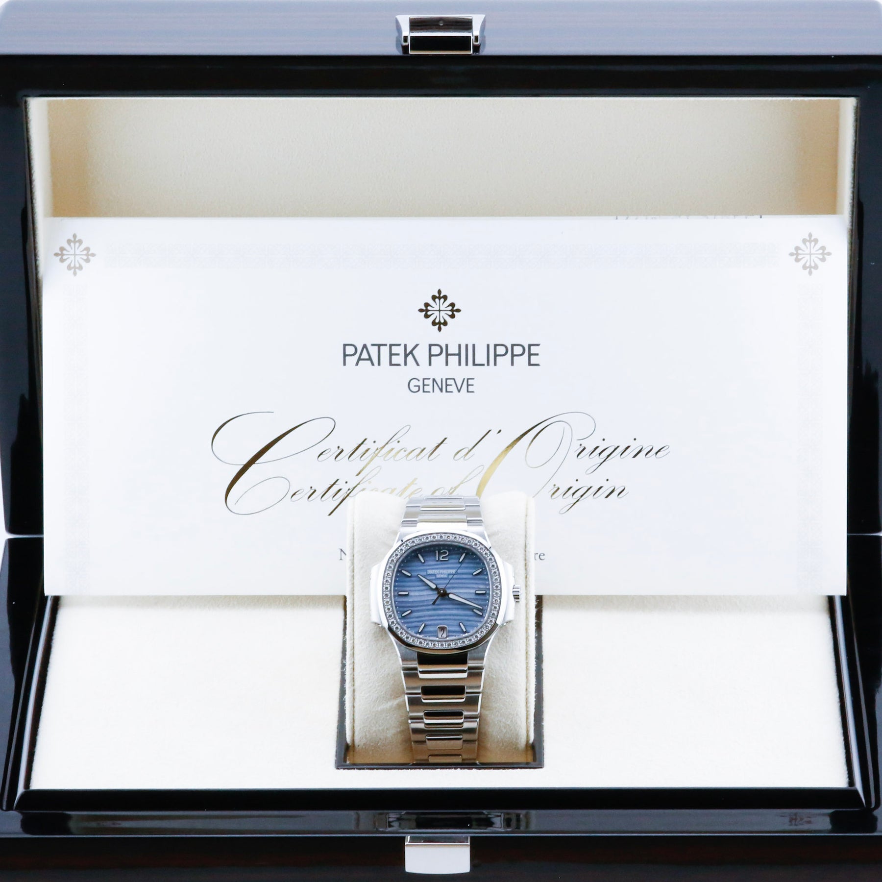 Patek Philippe Ladies Nautilus 7018/1A-010 Blue Mother Of Pearl 33.6mm Excellent 2018 Complete Set