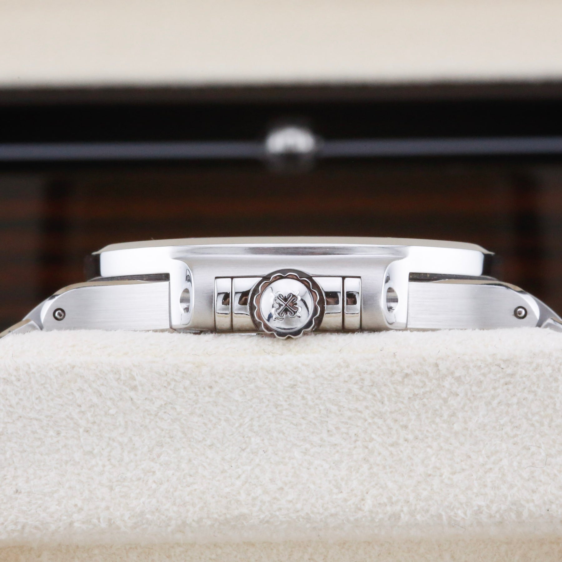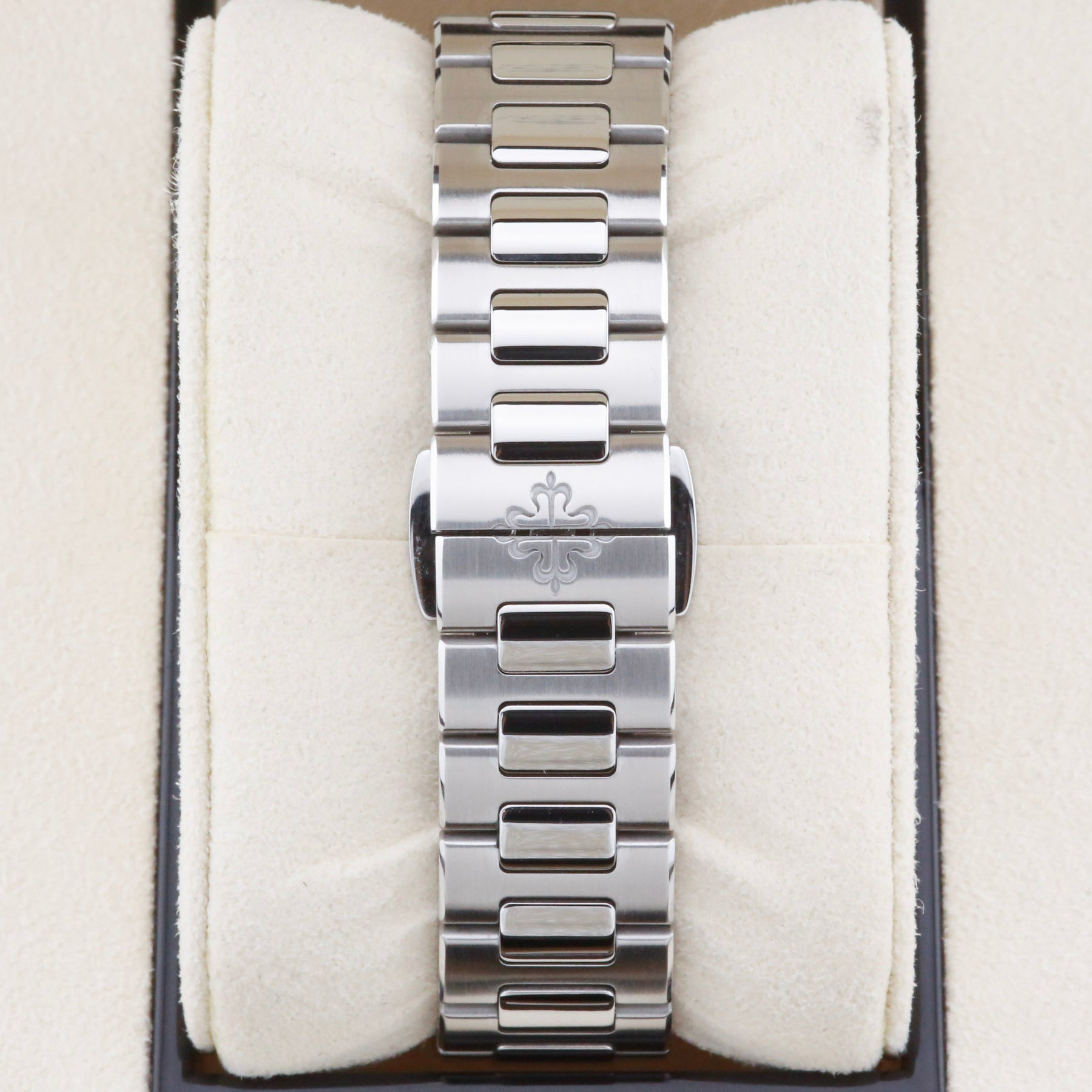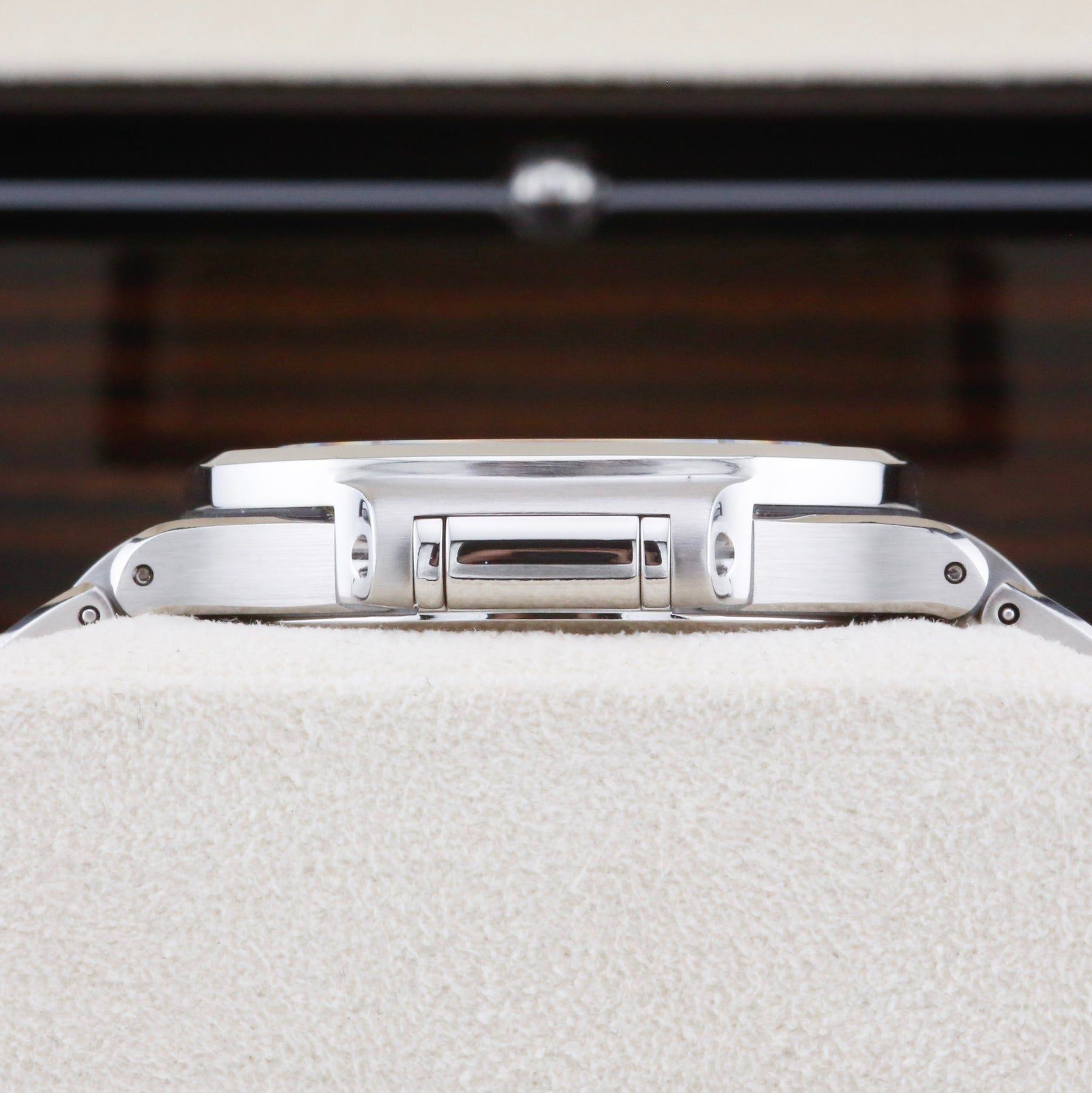 Now discontinued, this stainless steel, blue-dial Nautilus with diamond bezel has become increasingly sought after by collectors and enthusiasts who appreciate its balanced proportions and understated glamour. This particular watch is unworn and sold as a complete set, including the original box, booklets and Uk papers.