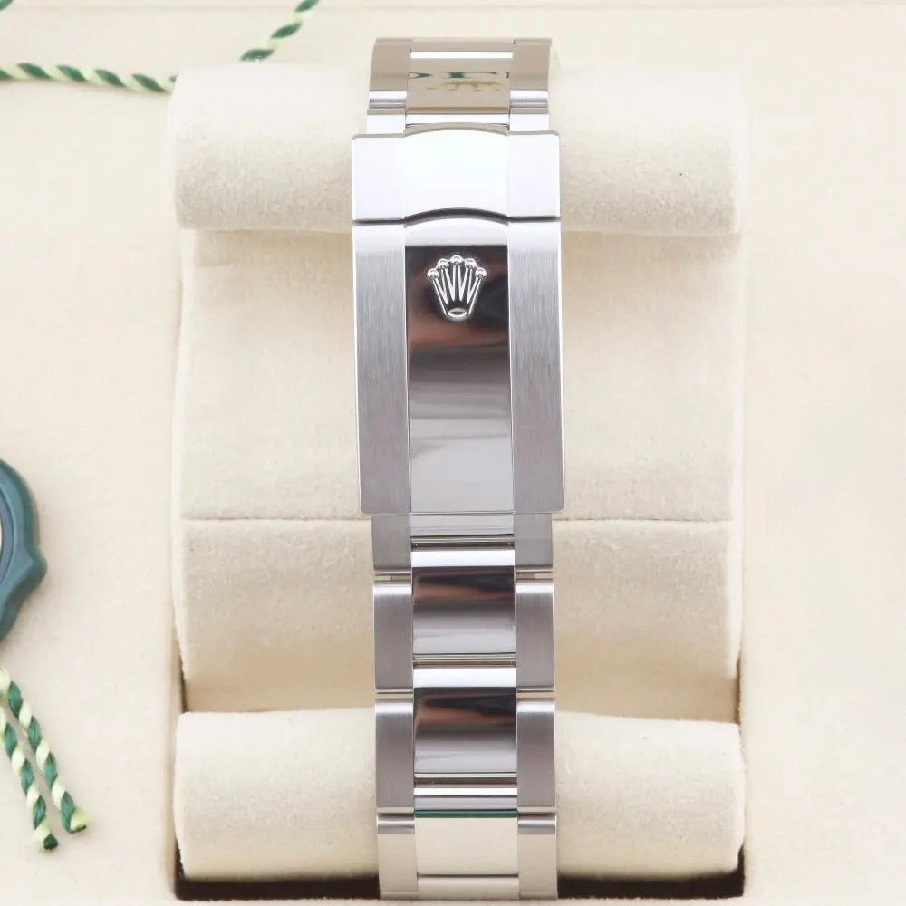 This unworn 2026 Rolex Datejust 41 Mint Green Dial 126300 is sold as a complete and original set, including the original box, papers and booklets. A watch register certificate and the remainder of the manufacturer's warranty are also included.