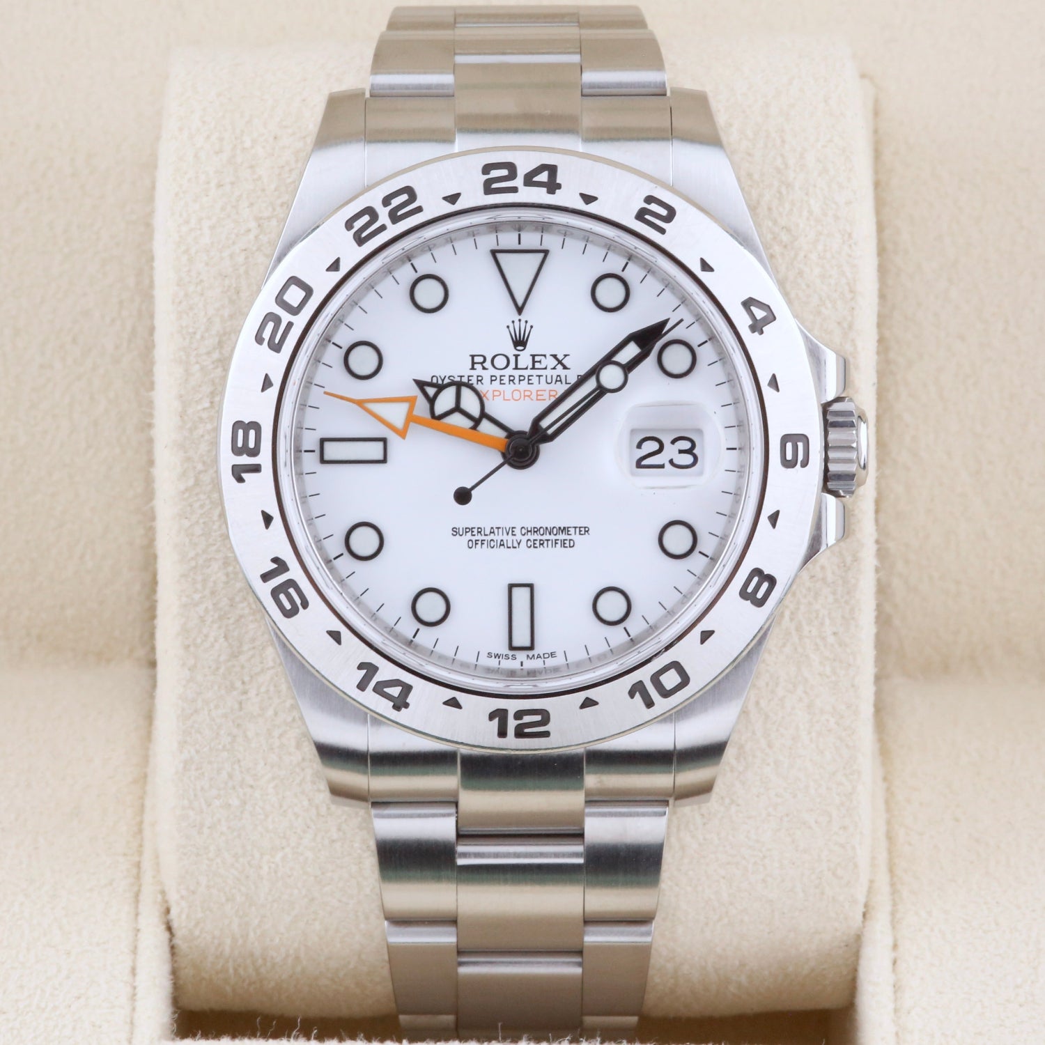 All of our watches are guaranteed to be 100% authentic, with no after-market parts or accessories. All of our watches are supplied with 100% original parts and with the original box and papers unless stated otherwise. On occasion, we may accept a watch that lacks a box and papers or has a custom dial; if this is the case, we will make that clear in the listing, and the price will be adjusted accordingly.