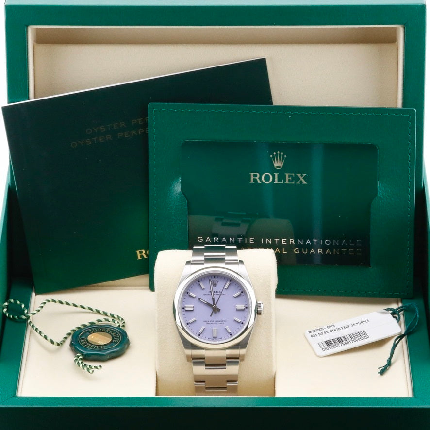 Rolex Oyster Perpetual 126000 Lavendar 36mm Unworn 2026 Complete Set