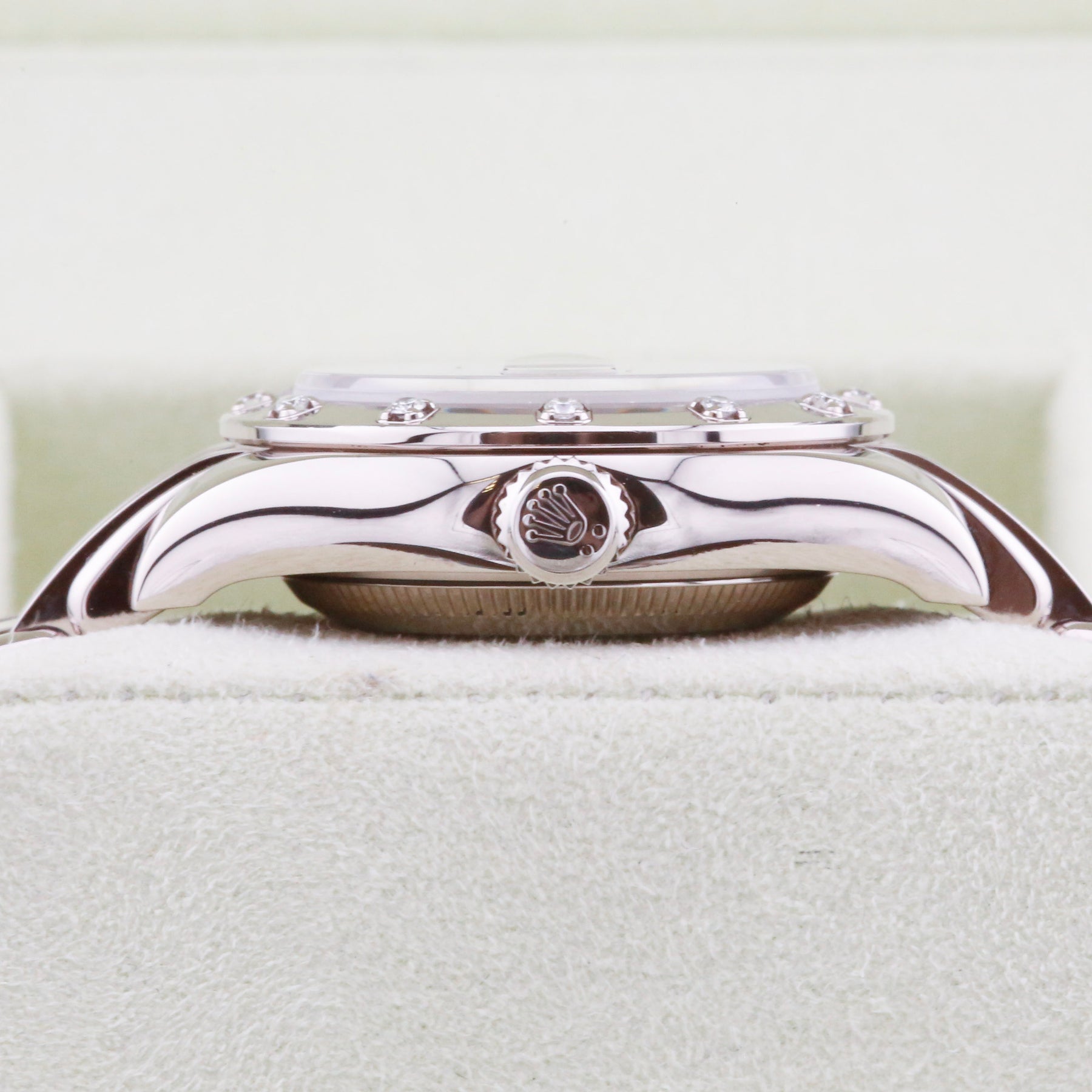 The watch we present to you today is a 2010 UK-supplied collector’s set in excellent condition. It comes complete with its original box, papers and tags, making it particularly appealing to collectors. This 80319 represents a fantastic opportunity to acquire a classic ladies’ Rolex in white gold. A 12-month warranty and a Watch Register Certificate are also included.