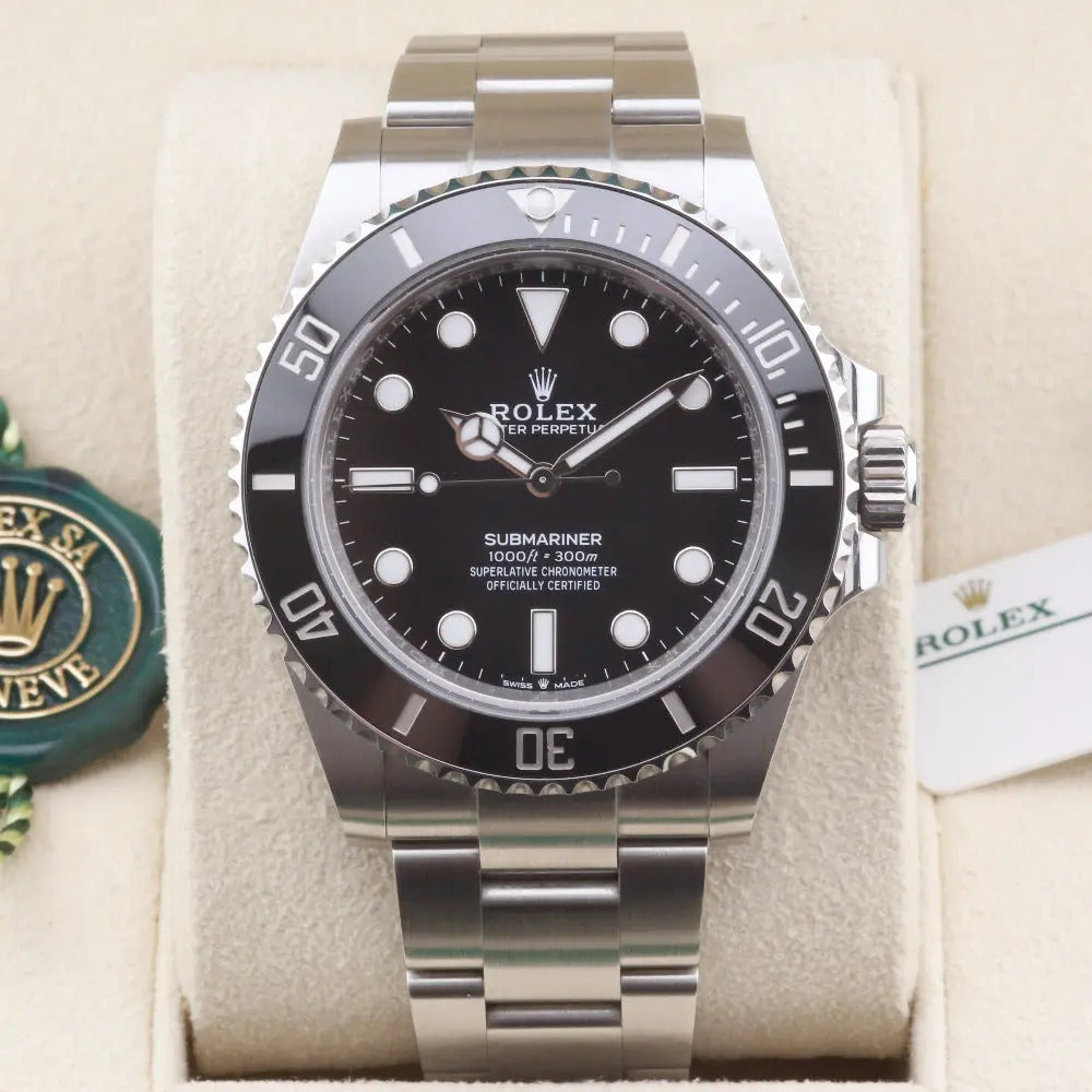 All of our watches are guaranteed to be 100% authentic, with no after-market parts or accessories. All of our watches are supplied with 100% original parts and with the original box and papers unless stated otherwise. On occasion, we may accept a watch that lacks a box and papers or has a custom dial; if this is the case, we will make that clear in the listing, and the price will be adjusted accordingly.