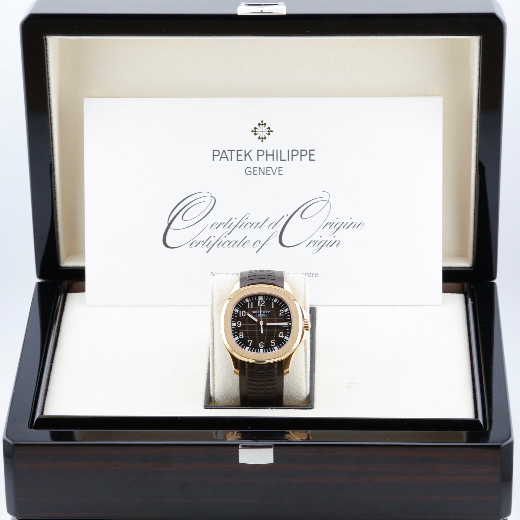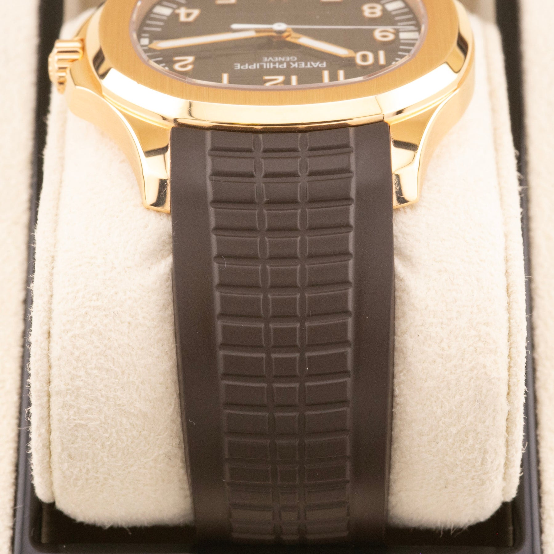 This Patek Philippe Aquanaut 5167R is in unpolished and excellent condition. This particular watch is sold as a complete set, including the original box, papers from the UK, tags and even the original UK bill of sale.