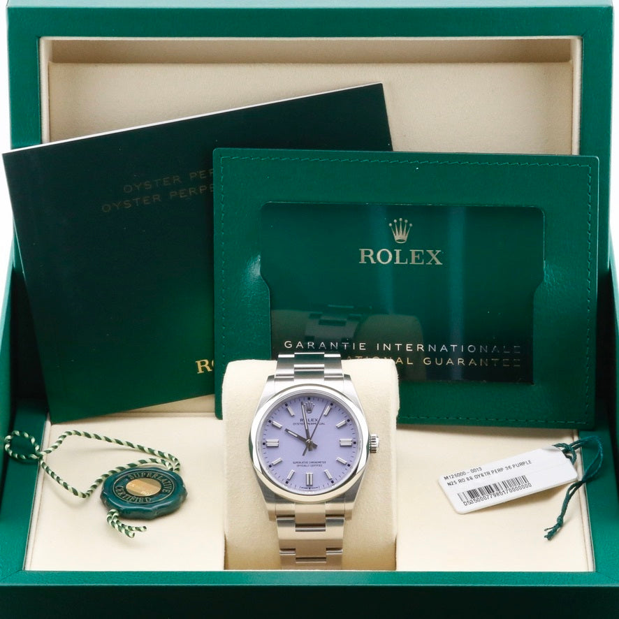 Rolex Oyster Perpetual 36 126000 Lavender 36mm Unworn 2025 Complete Set