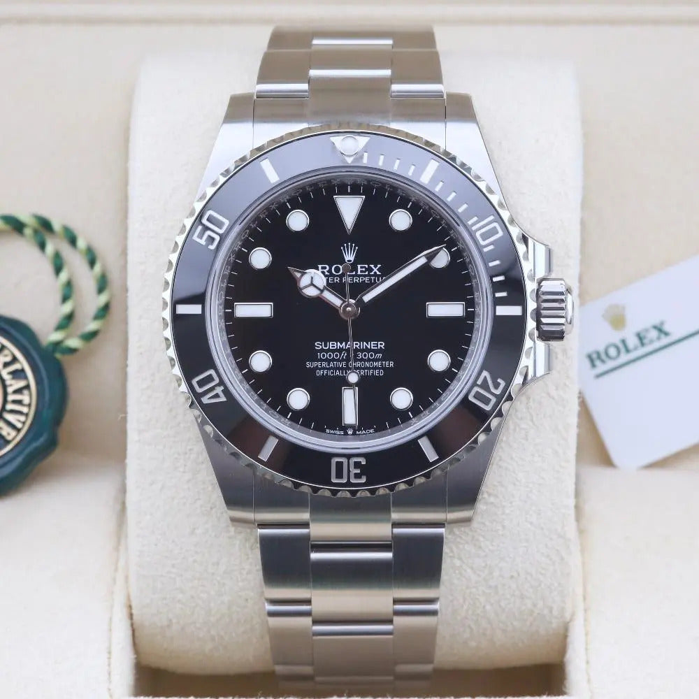 This December 2025 Rolex Submariner No Date 124060 is unworn and is sold as a complete set, including the original box, papers, booklets and swing tag. A watch register certificate and the remainder of the manufacturer's warranty are also included.