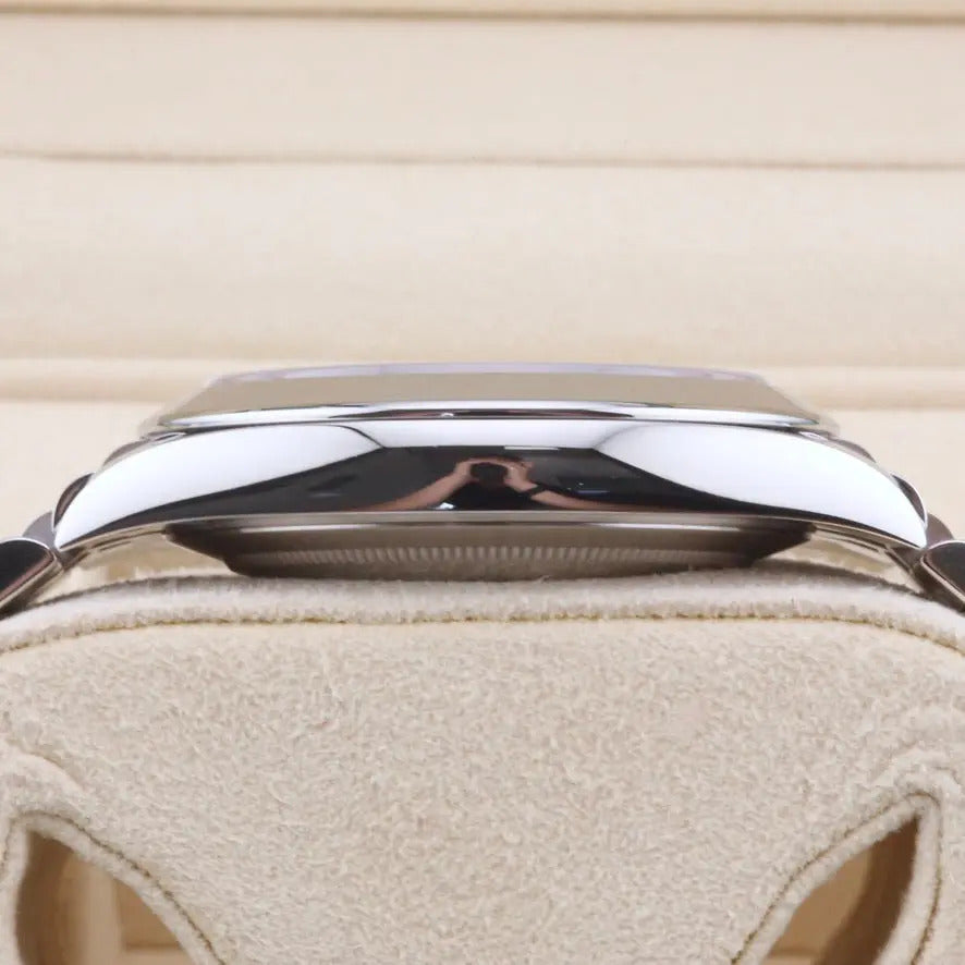 The Rolex Datejust 41 126300 we present today features the sought-after green dial with luminescent baton hour markers, allowing for swift legibility. In addition, the watch comes with Rolex's latest and most sophisticated time and date movement, a jubilee bracelet, and a smooth bezel.